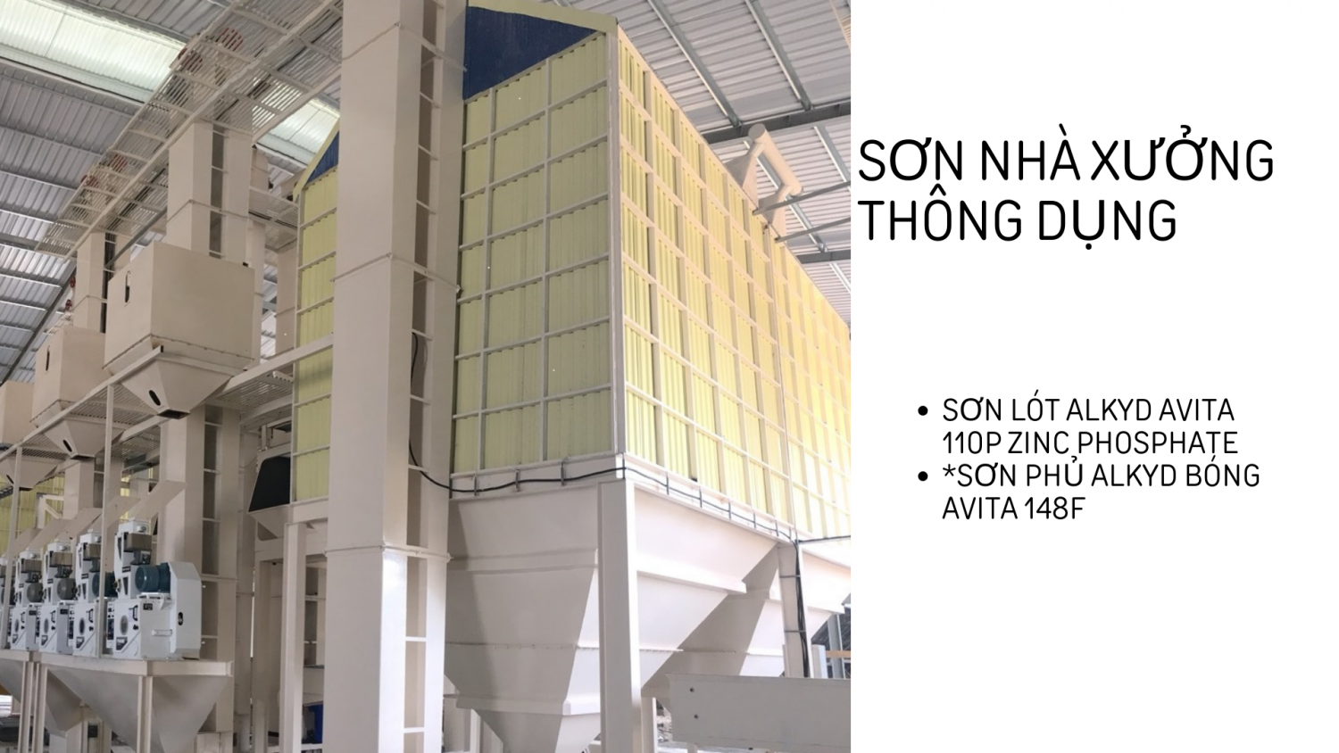 Avipaint là nhà sản xuất sơn công nghiệp với các sản phẩm chuyên dùng cho tàu biển, kết cấu thép trong môi trường công nghiệp nặng, tính ăn mòn cao như: nhà máy sản xuất công nghiệp, bồn bể công nghiệp...Các loại kết cấu thép phục vụ cho mục đích xây dựng thông thường như: nhà thép tiền chế, nhà cao tầng…